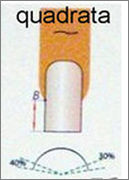Questo tipo di unghia spesso si spezza a livello del bordo libero. Per correggere quest’unghia con la ricostruzione adeguata è importante utilizzare tecniche adatte per farla apparire più affusolata e snella. Nell’allungarla controlleremo bene gli angoli e la curva “C” posizionando la cartina in modo corretto, di misura e forma.